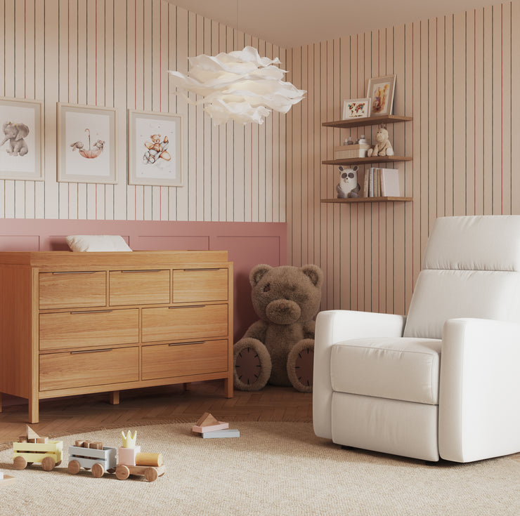 A nursery essential, The Newport Dresser features a seven-drawer design to optimize space and organization. Pair it with the matching changing topper (sold separately) for a seamless transition from changing table to dresser as your baby grows.